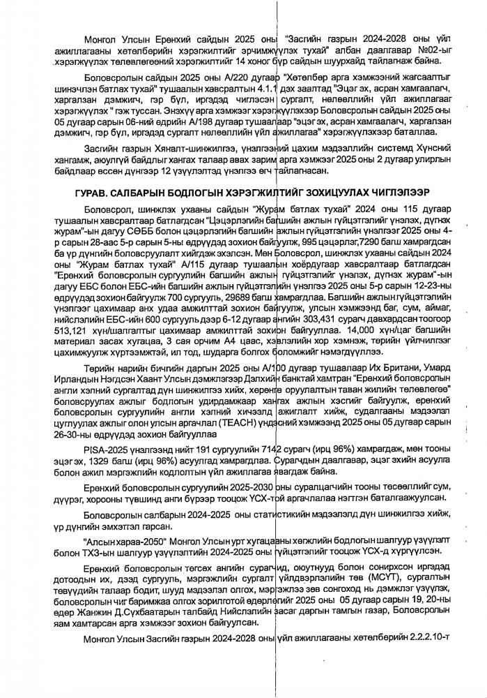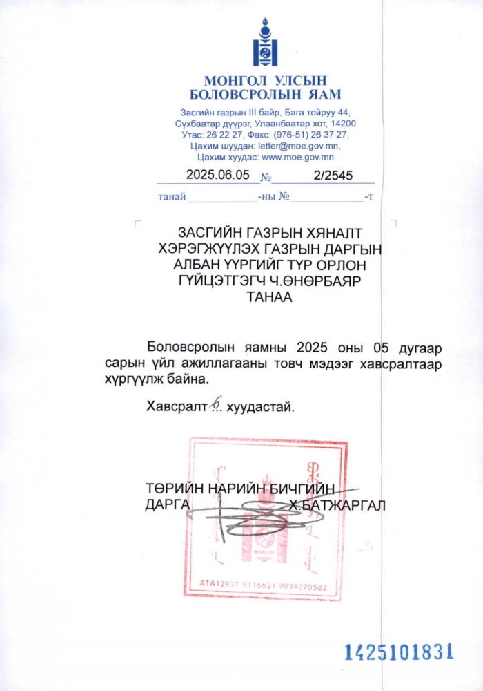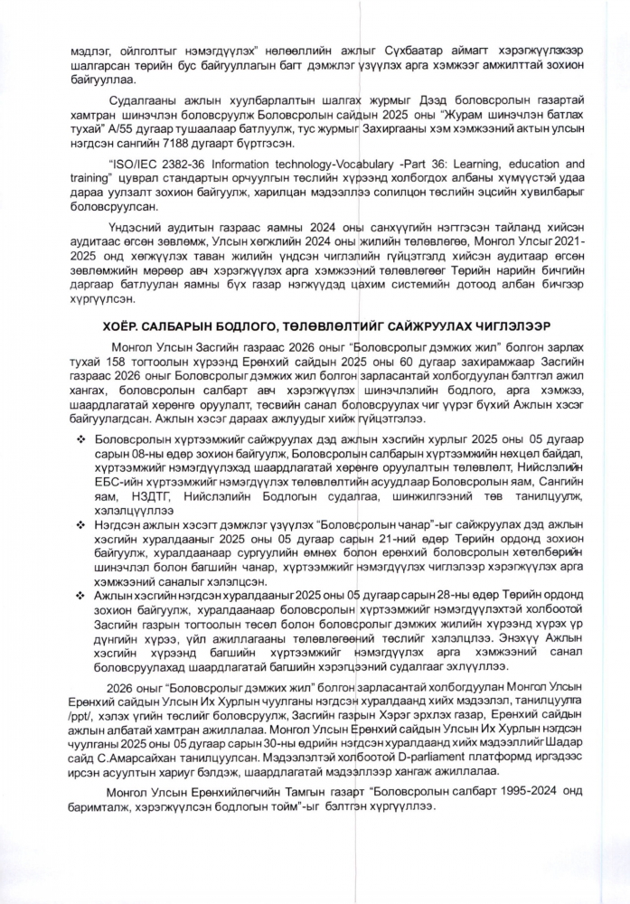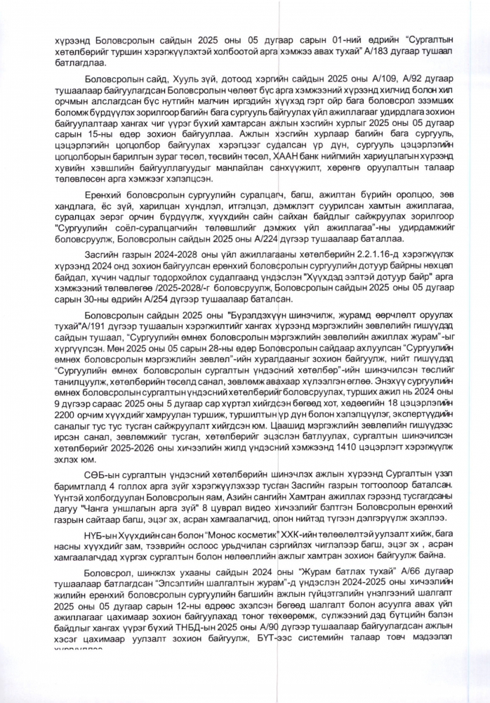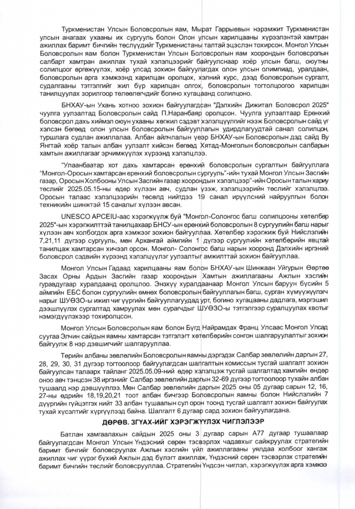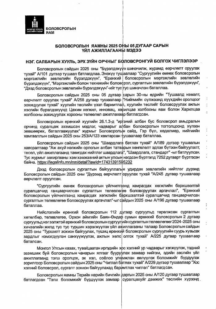 БОЛОВСРОЛЫН ЯАМНЫ 2025 ОНЫ 05 ДУГААР САРЫН ҮЙЛ АЖИЛЛАГААНЫ МЭДЭЭ