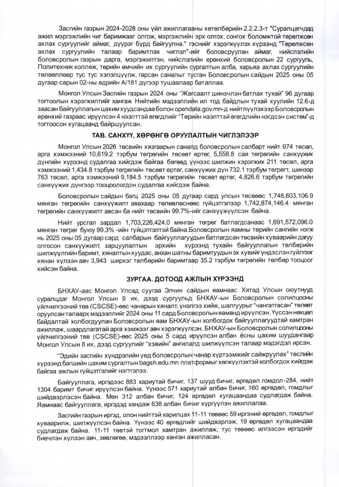 МЭРГЭЖЛИЙН БОЛОН ТЕХНИКИЙН БОЛОВСРОЛЫН СУРГАЛТЫН БАЙГУУЛЛАГЫН ТУСГАЙ БОЛОН ЭНГИЙН ЗӨВШӨӨРӨЛ