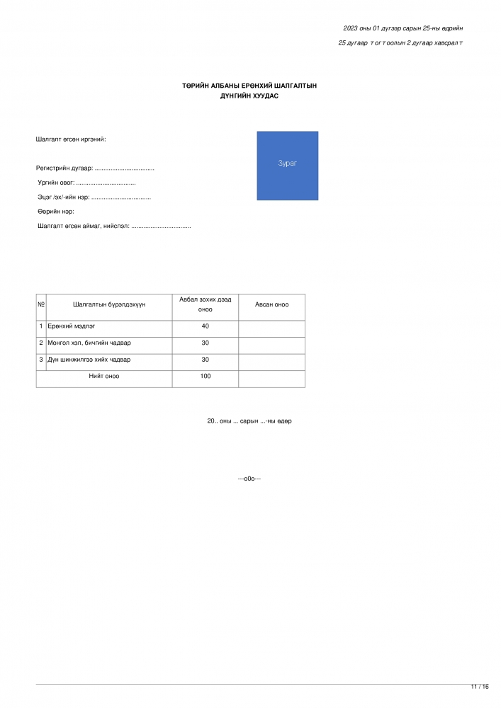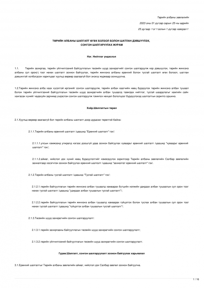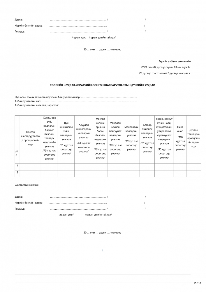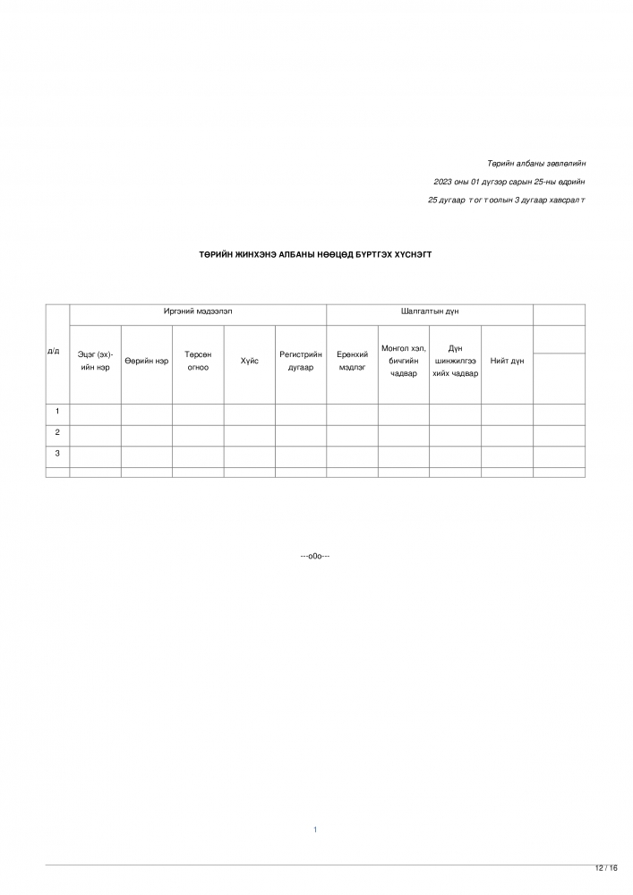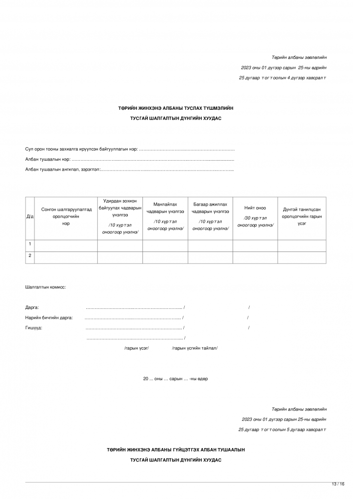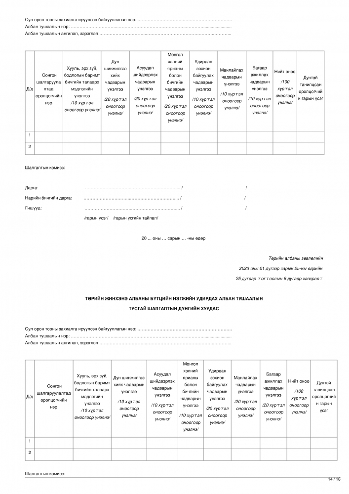 Эх сурвалж: Төрийн албаны зөвлөлийн 2023 оны 01 дүгээр сарын 25-ны өдрийн 25 дугаар тогтоолын 1 дүгээр хавсралт