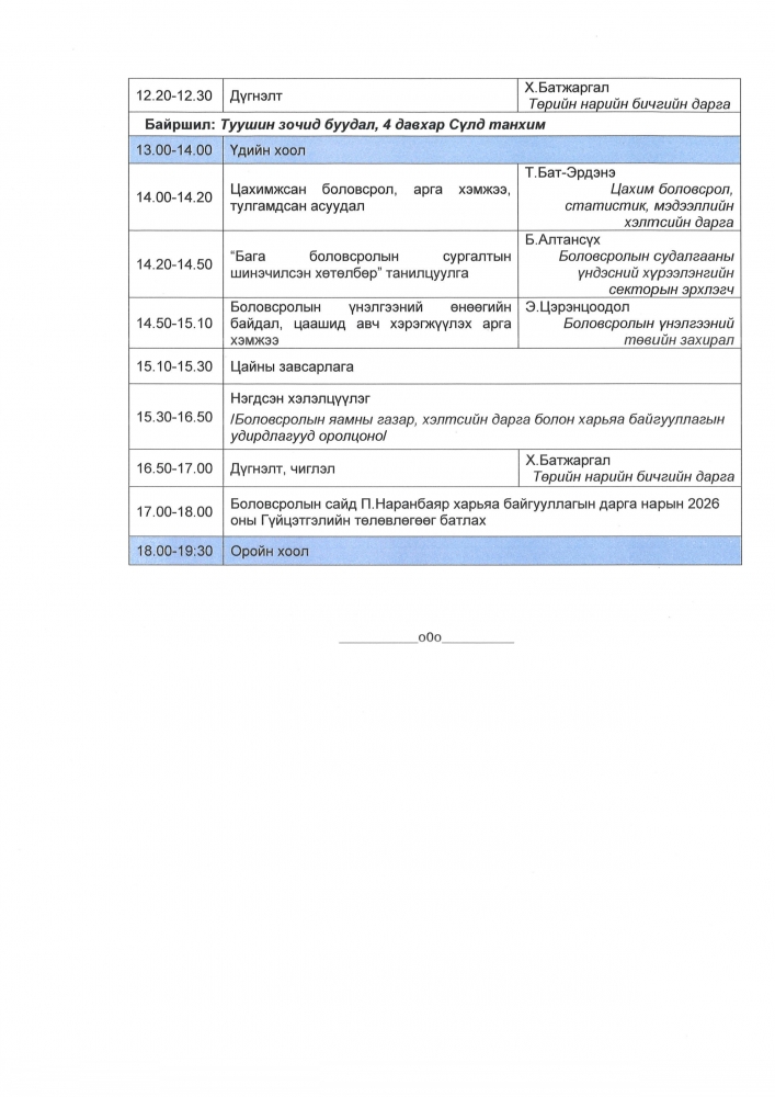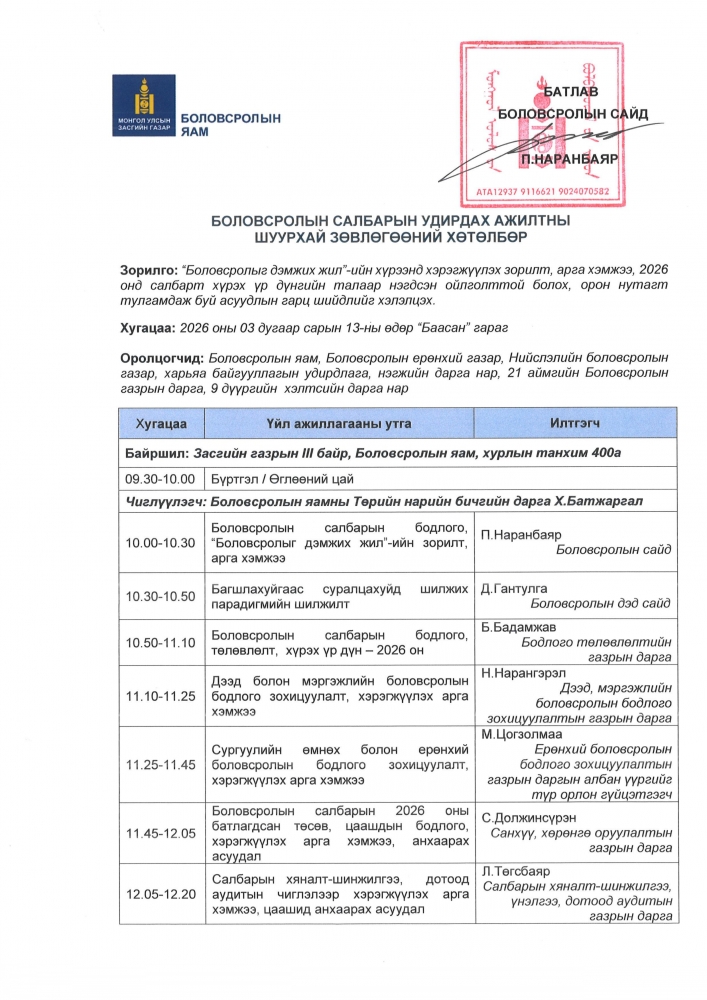 БОЛОВСРОЛЫН САЛБАРЫН УДИРДАХ АЖИЛТНЫ ШУУРХАЙ ЗӨВЛӨГӨӨНИЙ ХӨТӨЛБӨР
