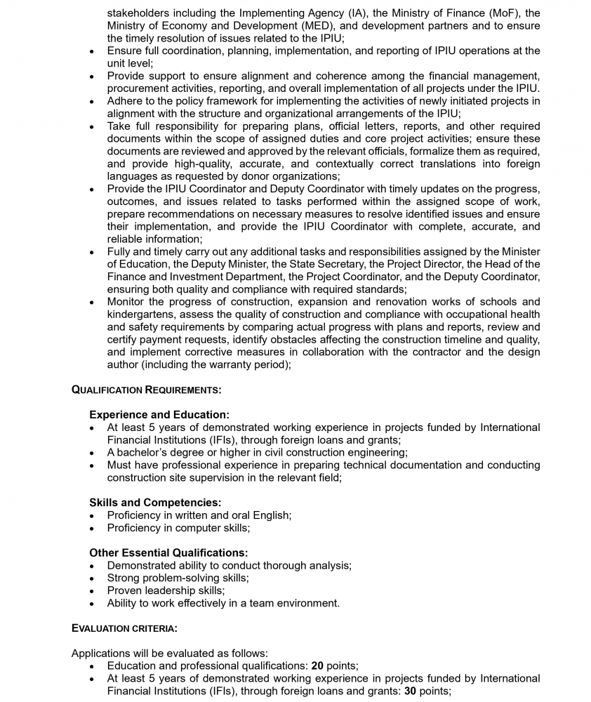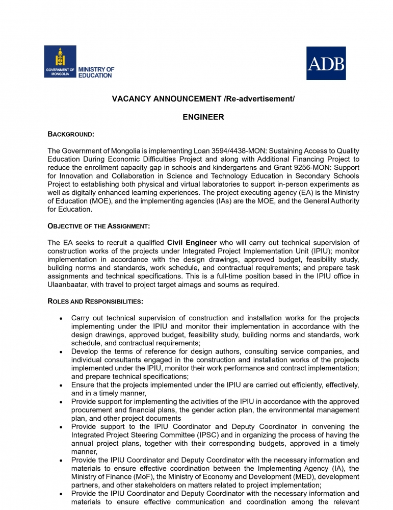 VACANCY ANNOUNCEMENT /Re-advertisement/
