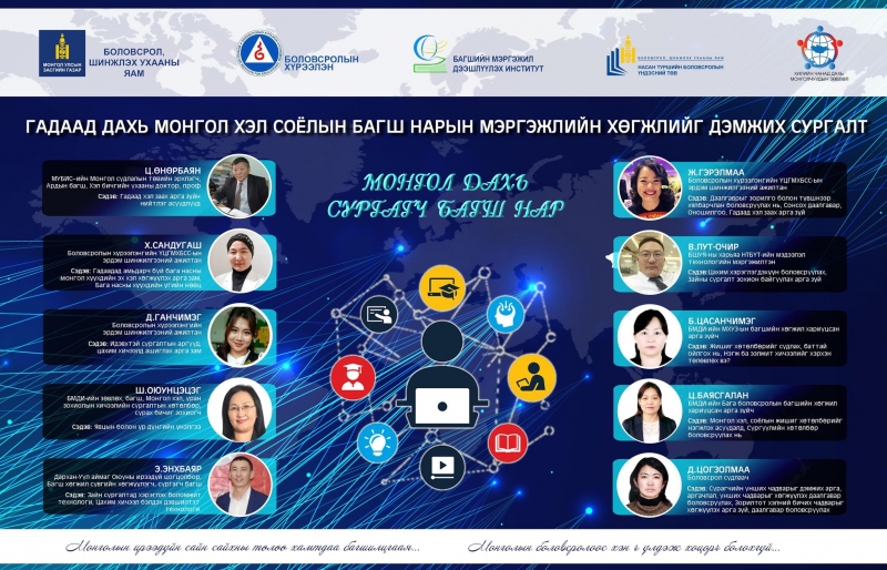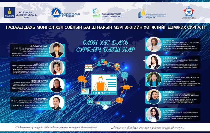 Боловсрол, шинжлэх ухааны яам, Боловсролын хүрээлэнгээс Багшийн мэргэжил дээшлүүлэх институт, Насан туршийн боловсролын үндэсний төв, Хилийн чанад дахь монголчуудын зөвлөл байгууллага хамтран гадаад дахь монгол хүүхдэд эх хэл, соёлын хичээл зааж буй багш нарт мэргэжил, арга зүйн арга зүйн дэмжлэг үзүүлэх 3 дахь удаагийн цахим сургалт 2021.04.24-2021.05.17-ны өдрүүдэд амжилттай боллоо. Энэ удаагийн сургалтад АНУ, Их британи, Канад, Нидерланд, ОХУ, Польш, Солонгос, Тайвань, Турк, ХБНГУ, Австрали зэрэг 15 орны 60 багш хамрагдав.