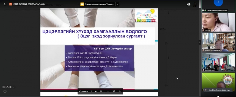 Цэцэрлэгийн хүүхэд хамгааллын бодлогыг хэрэгжүүлэх, хэрэгжилтийг дэмжих үндэсний сургагч багш бэлтгэх сургалтын агуулга, арга зүйг МУБИС-ийн Нийгмийн ажил, аргазүйн тэнхимийн багш нар Боловсролын Хүрээлэн болон БШУЯ-ны СӨБГ-ын мэргэжилтнүүдийн оролцоотой боловсруулсан нь сургуулийн өмнөх боловсролын байгууллагын орчин үеийн хөгжлийн чиг хандлагад нийцсэн, салбарын хэтийн болон ойрын зорилтуудыг ханган хэрэгжүүлэхэд үр дүнтэй болохыг сургалтад оролцогчид хэлж байлаа.
