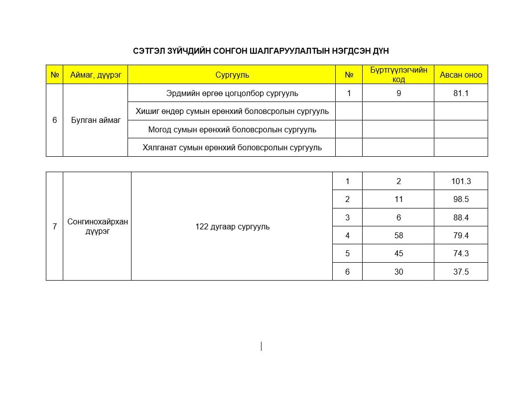 “Тогтвортой хөгжлийн боловсрол II” төслийн түшиц Ерөнхий боловсролын 30 сургуульд ажиллах сэтгэл зүйчийг сонгон шалгаруулалт энэ өдрүүдэд үргэлжиллээ. Сонгон шалгаруулалтад 73 хүний материал ирж хоёр шатны шалгаруулалтын дараа 30 сэтгэлзүйчийг сонголоо. Сонгон шалгаруулалт энэ сарын 5-21-ний өдрүүдэд болж, нэгдсэн дүн гарлаа.